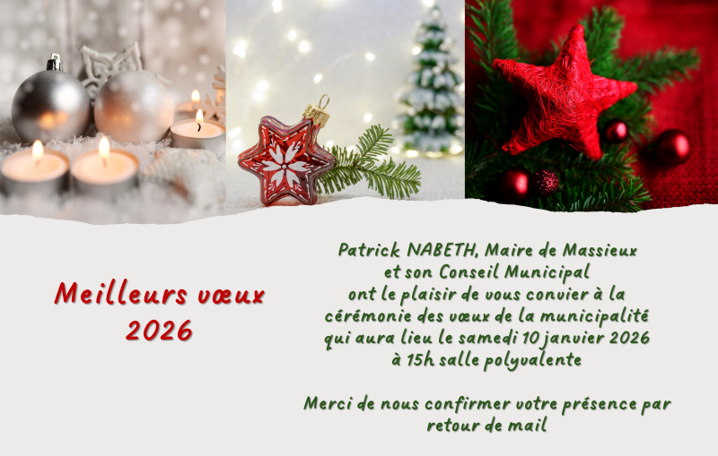 Vœux du Maire 00 jours 00 heures 00 minutes 00 secondes Date 10 Jan 2026 Heure 15h00 - 16h00 Lieu Salle Polyvalente Claudius Ladret Massieux Organisateur Mairie de Massieux Email mairie@mairie-de-massieux.fr Partagez cet événement